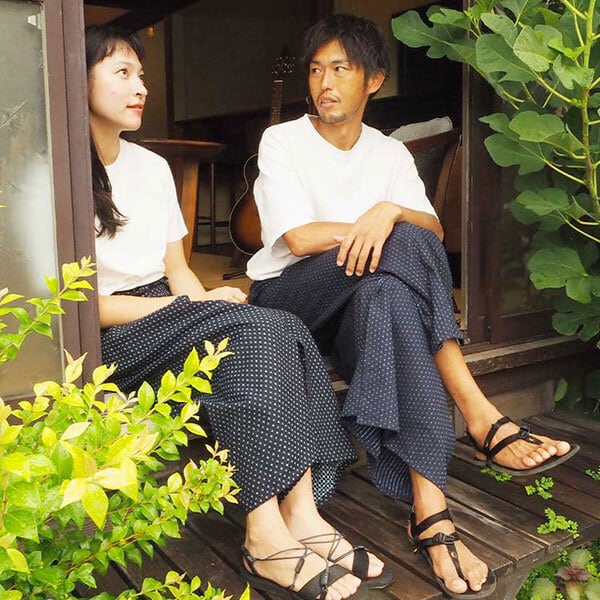アジアのスタイルを取り入れたミャンマーパンツを、日本の伝統的な「遠州織物」で作りました。