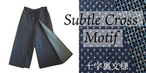 遠州刺し子ミャンマーパンツ <十字裏文様・紺>